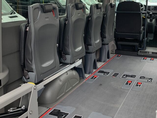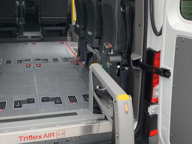 • TriflexAIR-Bodensystem mit Monobolts oder integriertem Rollstuhlsicherungssystem