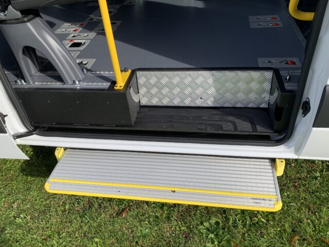 • Aluminiumschiene an der linken Seitenwand zur Sicherung oder zum Transport von Rollatoren