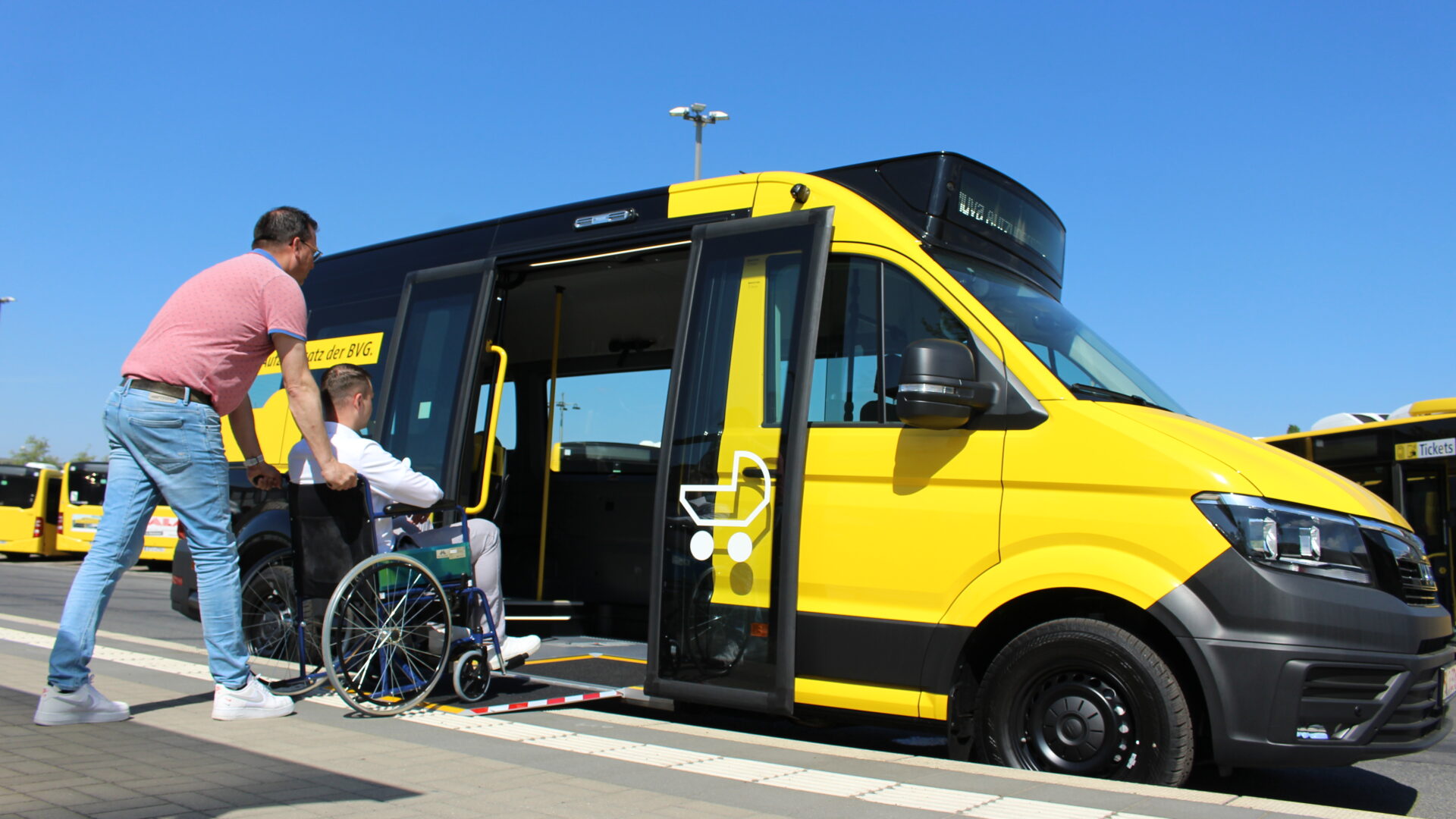 Das integrierte Rollstuhl-Rückhaltesystem, die Rampe und die ergonomischen Bedienelemente ermöglichen es dem Fahrer, schnell und sicher zu arbeiten. Die körperliche Belastung bleibt minimal.