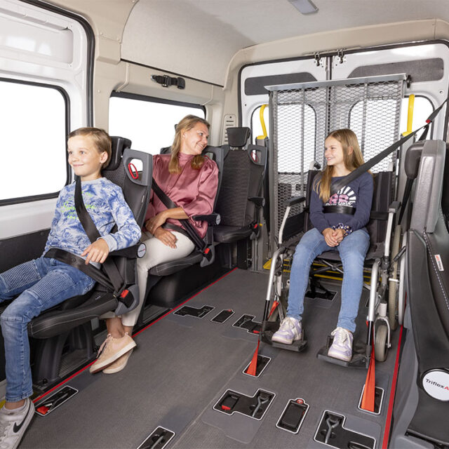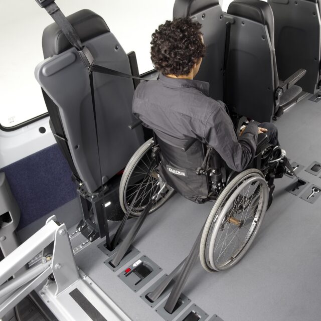 Der Transport von Rollstühlen kann immer sicherer, einfacher und bequemer sein. Deshalb erfinden wir uns immer wieder neu. Es ist also nicht ohne Grund, dass wir bereits viele fortschrittliche Systeme in unserem Namen haben. Denken Sie an das integrierte Rollstuhl-Rückhaltesystem, die XXL-Gurte oder die Sicherheitskontrolle. All diese Geräte sorgen dafür, dass wir einen komfortablen Transport für jedermann ermöglichen.